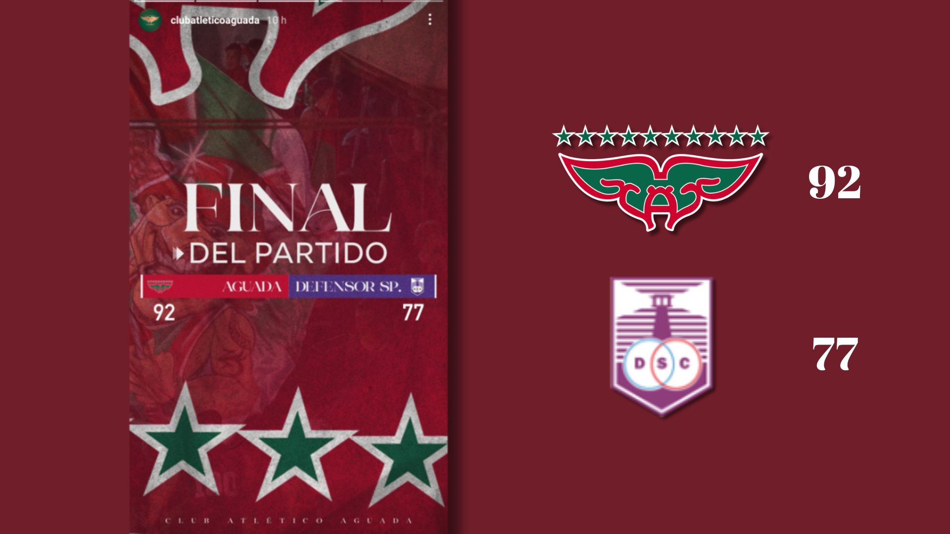 FINAL DEL PARTIDO: NACIONAL 77 – AGUADA 68...